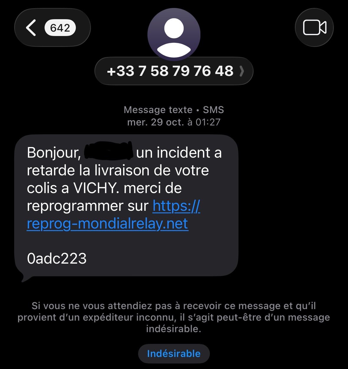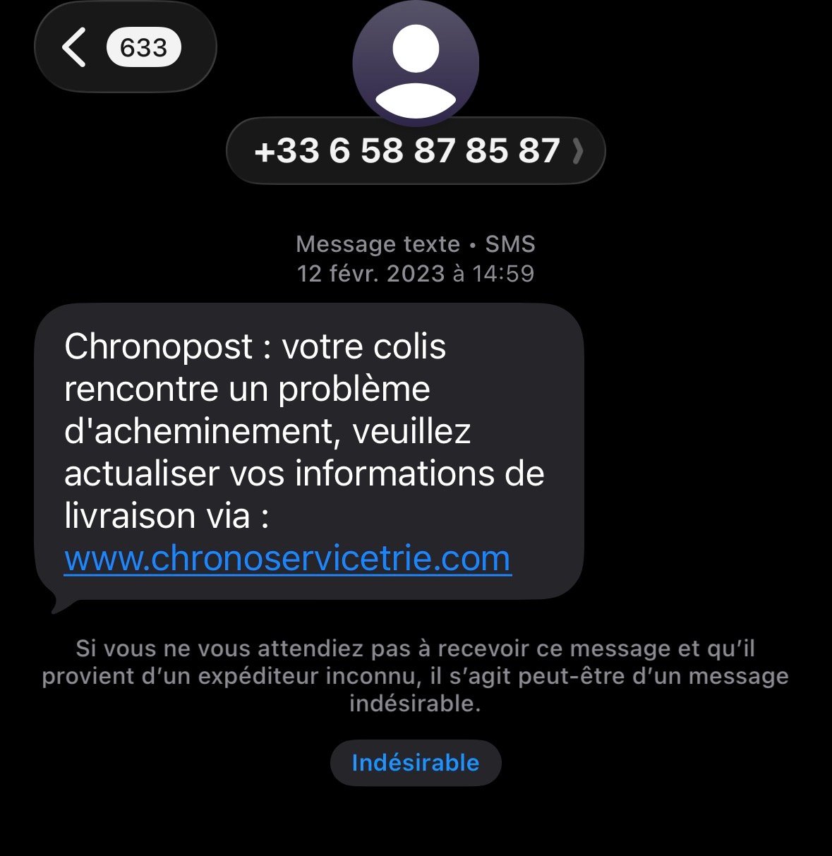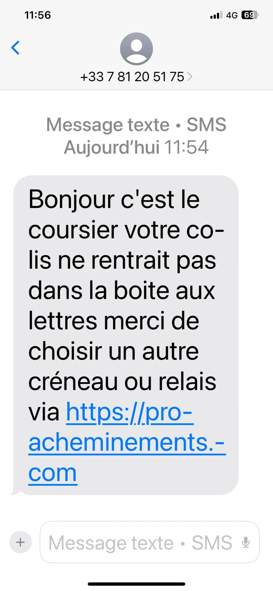 Faux sms lié à une livraison qui n'existe pas