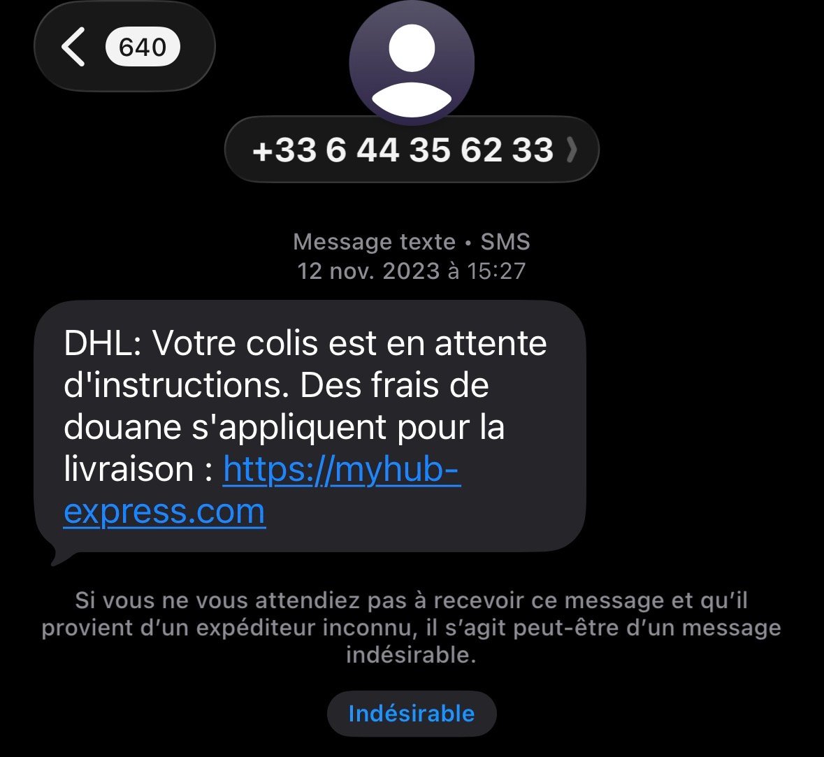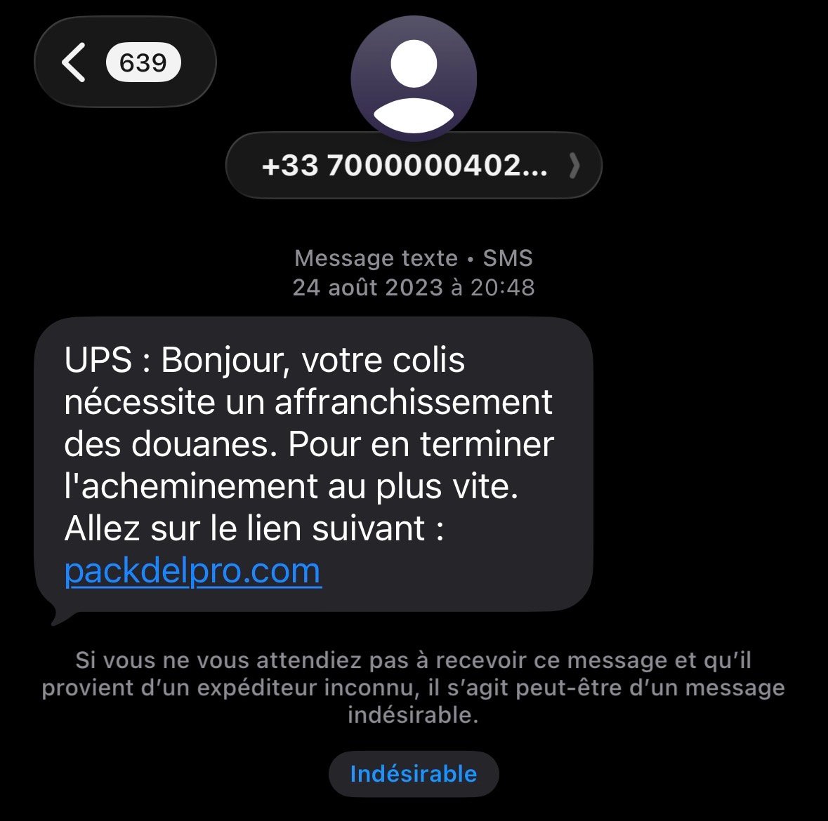 Livraison de colis inexistante avec des prétendus frais de douanes, rien que le numéro on sait que c'est de l'arnaque