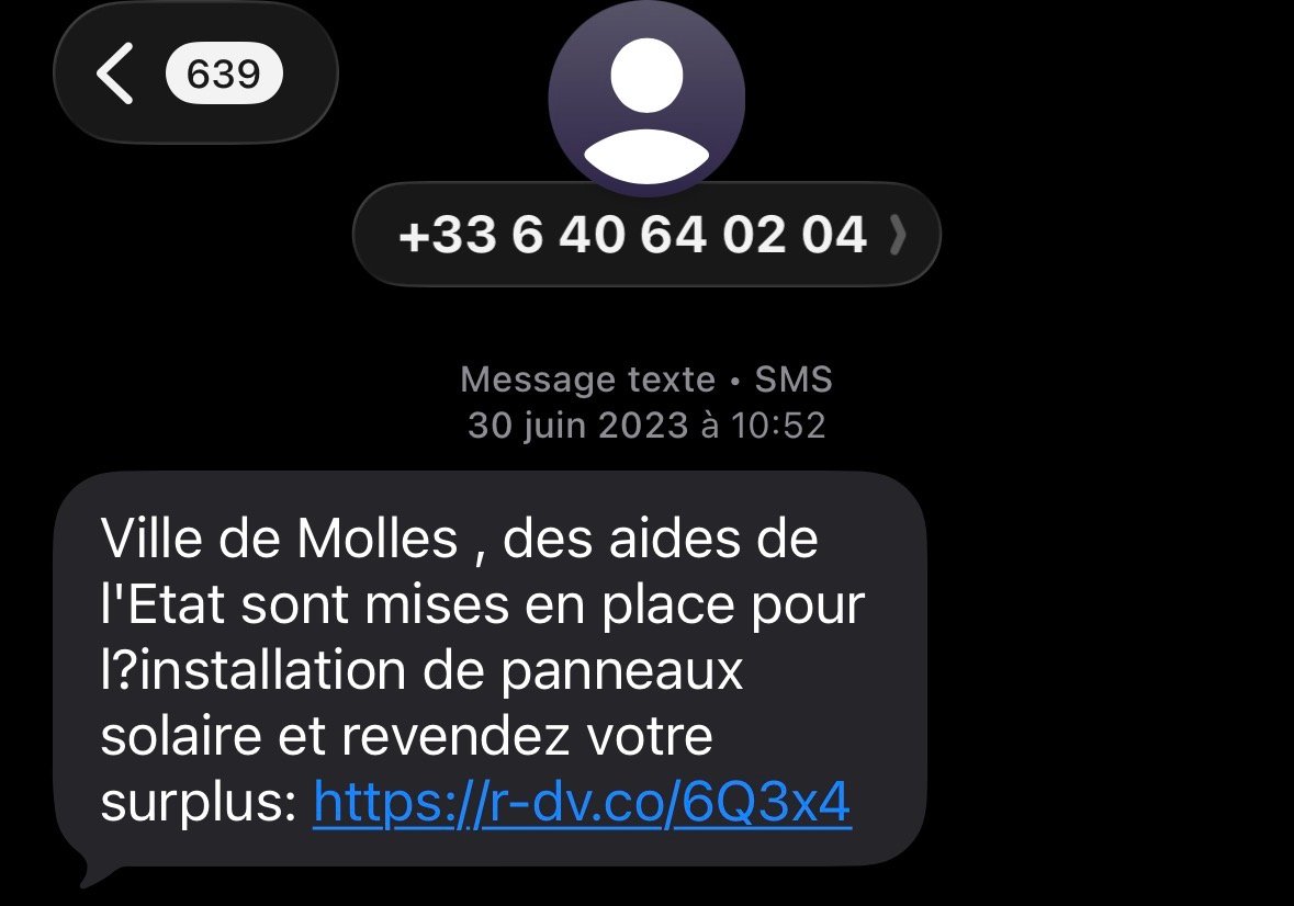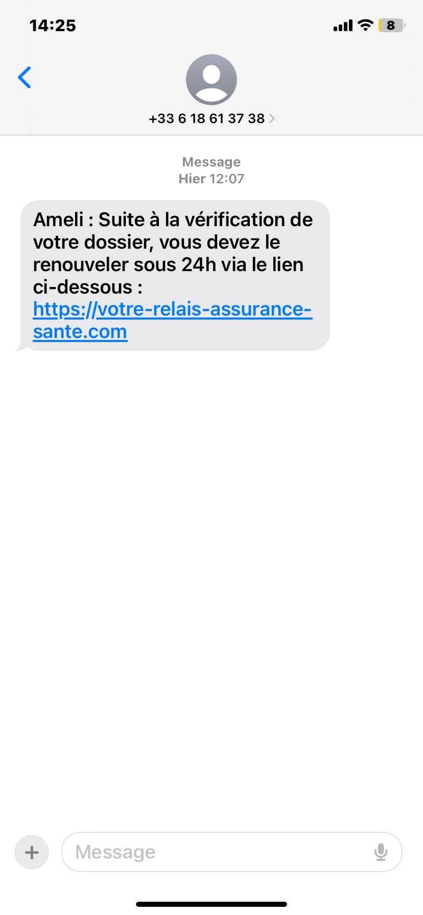 SMS qui essaye de se faire passer pour une institution gouvernementale