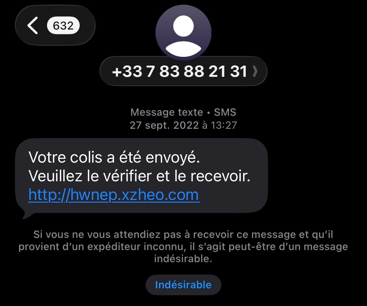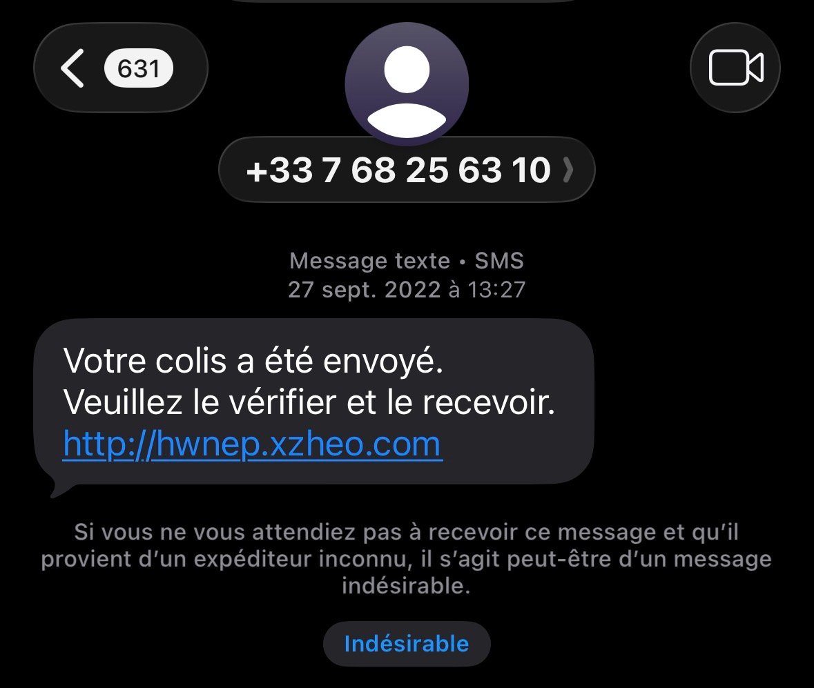 Arnaque sms pour un colis